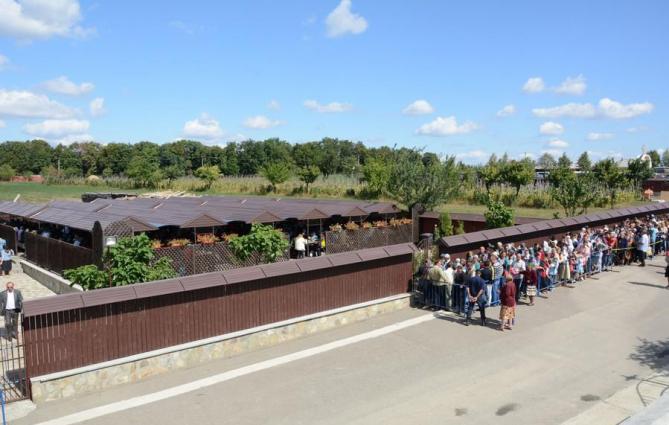Sfânta Liturghie dedicată hramului ctitoriei lui Iane Hadâmbu a fost săvârşită în altarul de vară al aşezării monahale. În tot acest timp, oamenii au aşteptat la rând pentru a se închina la icoana făcătoare de minuni a Maicii Domnului, aşezată într-un baldachin împodobit cu flori. „Am venit la hramul Mănăstirii Hadâmbu împreună cu familia, pentru a o cinsti pe Maica Domnului. Ne-am închinat la icoana făcătoare de minuni, mai ales că dorim să-i învăţăm şi pe copii să se roage şi să fie credincioşi”, s-a exprimat Ioan din Miroslava. „M-am rugat la Maica Domnului să ne scape de boală şi de suferinţă”, a spus Maria din Sineşti, judeţul Iaşi, care a petrecut sub cerul liber noaptea dinaintea hramului aşezării monahale.